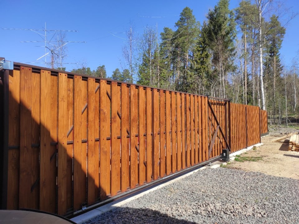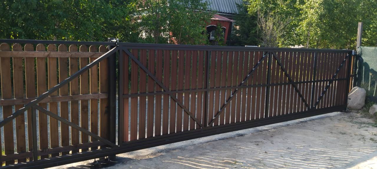 Откатные ворота с автоматикой Обшивка профлистом Адрес: г.Петрозаводск, ул.Муезерская Статус: заершен