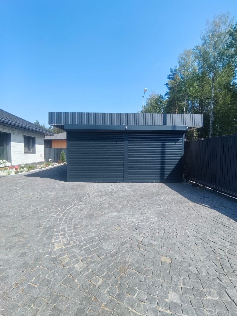 Навес для авто и въездная группа с откатными воротами