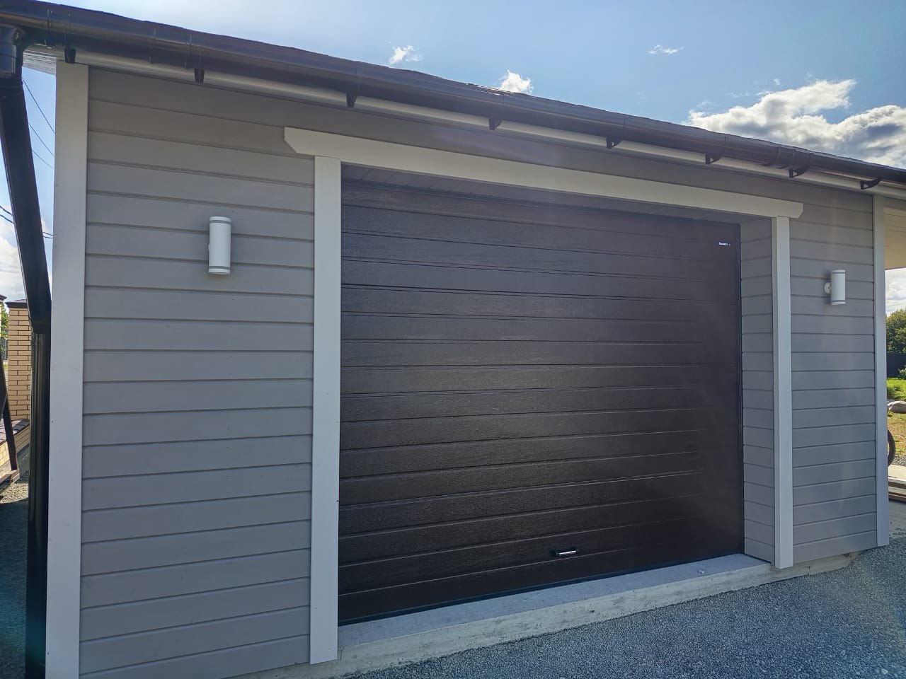 Секционные ворота и бытовая дверь Ультра В едином стиле Адрес: пос.Заозерье Статус: завершен